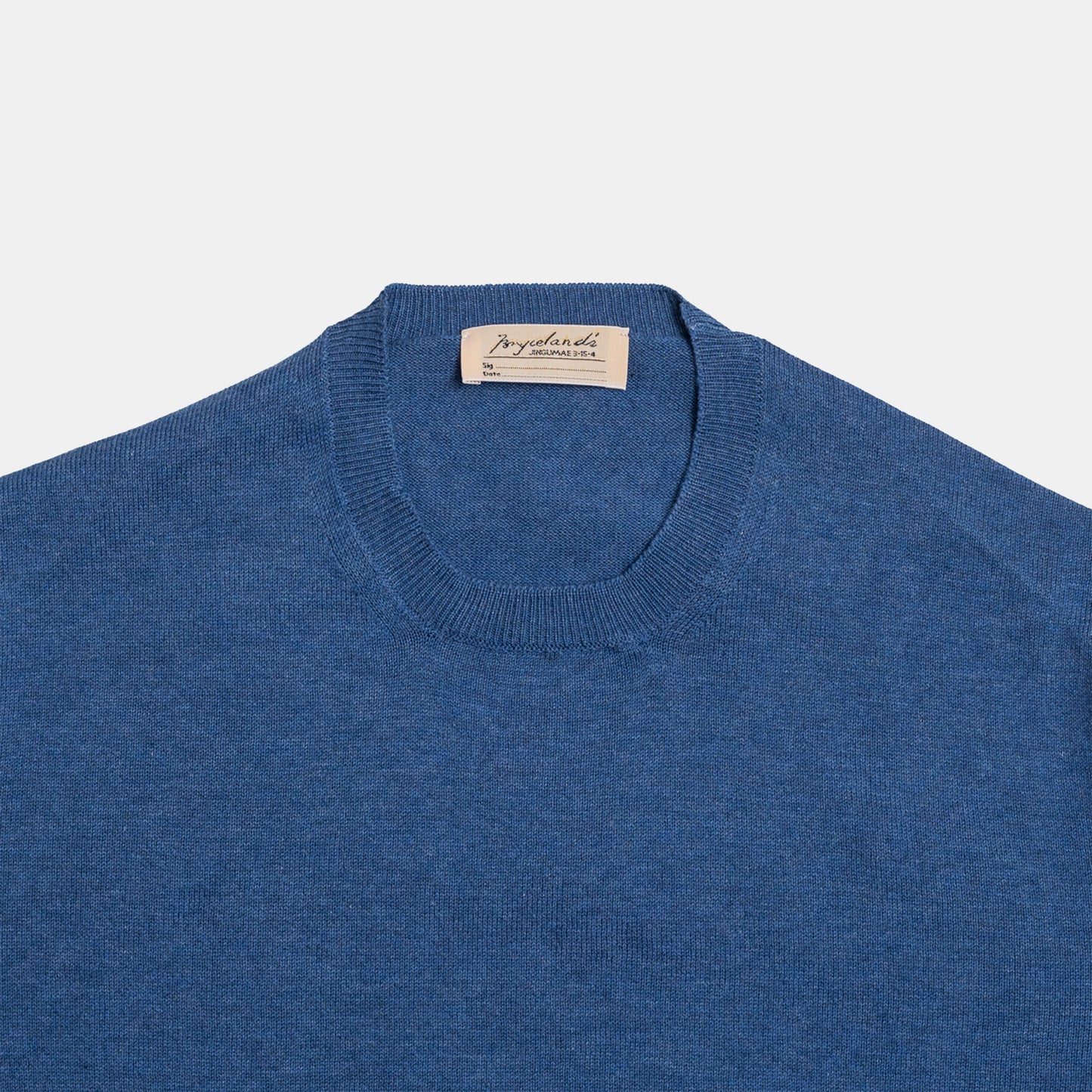 A variation on our skipper polo, the Skipper Tee is the same body – a short cotton polo with large waistband rib and sleeve ribs, but with a crew neck.