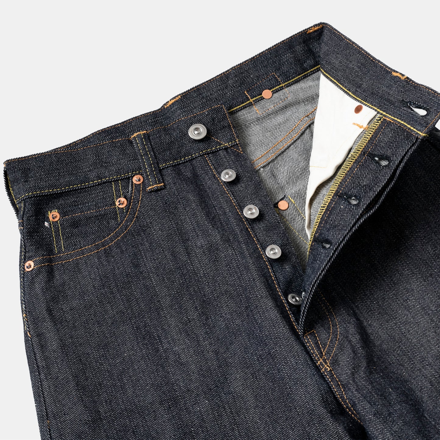- 12oz Unsanforized selvage denim
