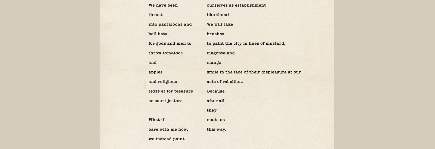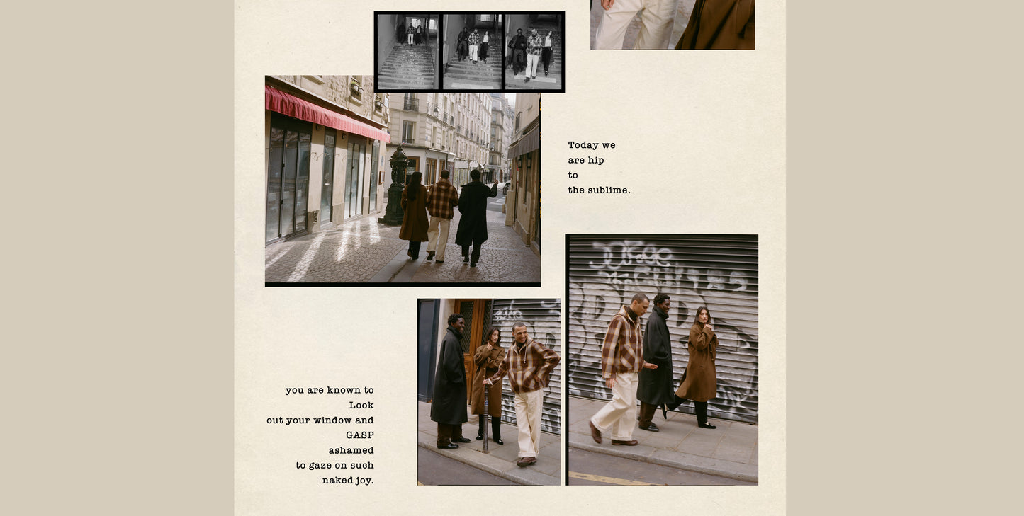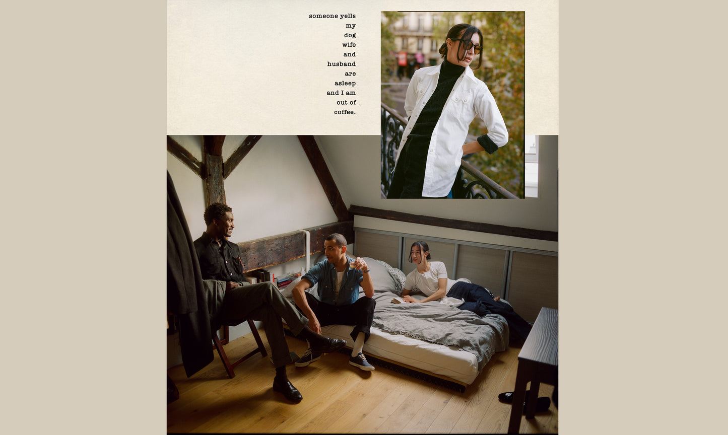Their wardrobes spoke a quiet manifesto: workwear, worn in solidarity with the everyday labourer, mixed with elements of Mid Century Ivy worn loose, soft and rumpled. Egalitarian yet romantic -  a subtle rebellion against the buttoned up establishment they sought to escape.