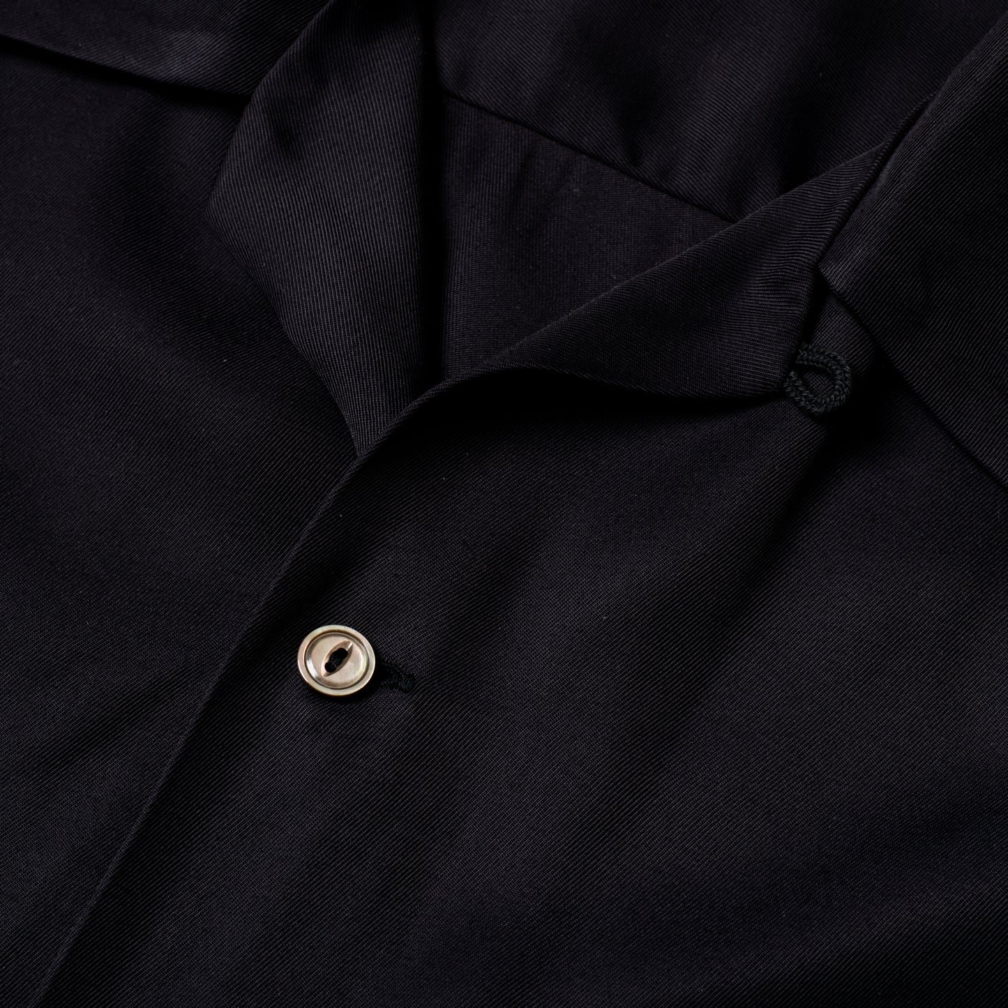 - Open collar with a loop-button closure