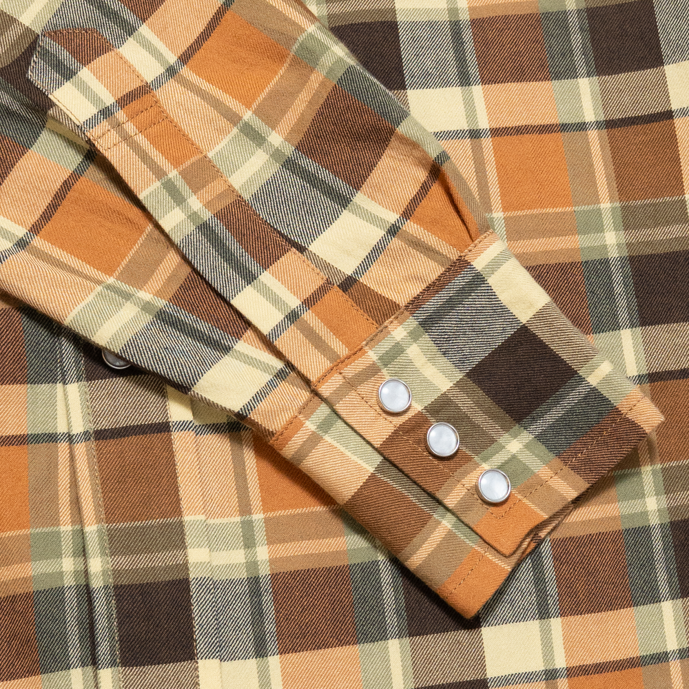 The Snap Buttoned Western Shirt is a perfect example of that - it mixes the refined with the utilitarian. Cut along the lines of the original 50’s classics, it is athletically proportioned with a nipped waist and broad chest. The tails fall long, to stay securely tucked in against rigorous use, with a long sleeve to keep the wrist covered even with arms fully extended. The collar height and point are generous, equally suited to pairing with a tie or being flipped up against the sun.